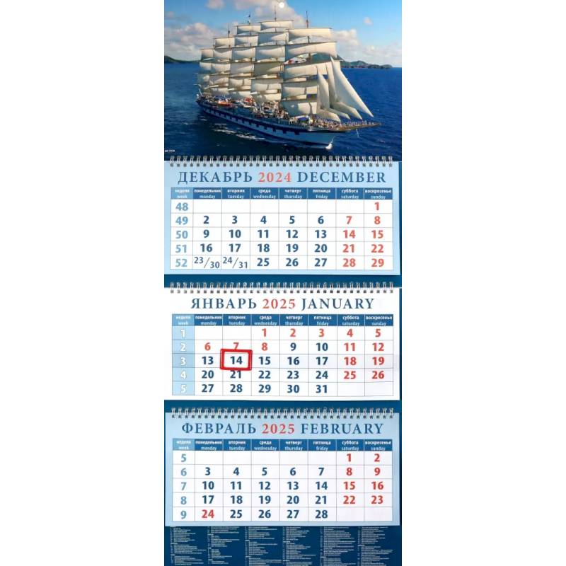 —Календарь квартальный на 2025 год Парусник
