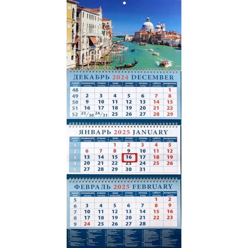 —Календарь квартальный на 2025 год Романтика Венеции