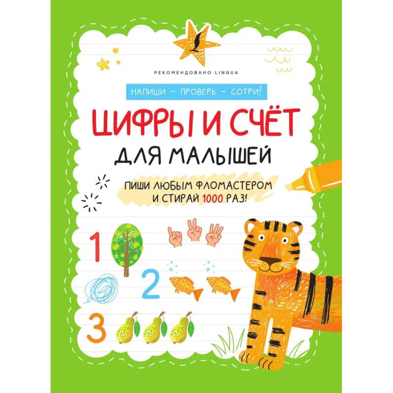 Предлагаемая книга – настоящая находка для родителей, которые хотят познакомить малышей с цифрами и базовыми навыками  счёта. В книгу вошли задания, направленные на отработку написания цифр по точкам, а также простые, но интересные задачи на сложение и вычитание.  Благодаря специальной бумаге в прописях можно писать и рисовать, а затем стирать написанное - и так много раз, доводя до совершенства свои навыки. Для работы с книгой подойдет любой фломастер, который есть дома или который нравится малышу.