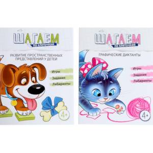 Комплект состоит из: 1. Шагаем по клеточкам. Графические диктанты. Для детей 4-6 лет 2. Шагаем по клеточкам. Развитие пространственных представлений у детей 4-6 лет Книги по развитию пространственных представлений предназначены для работы с детьми 4-6 лет. Упражнения построены по принципу тренажера - приобретенные навыки закрепляются равноценными и более сложными заданиями, а материал распределяется по дидактическому принципу - от простого к сложному. Упражнения не только формируют у ребенка пространственную ориентацию, но и способствуют овладению математическими навыками, улучшают зрительно-моторную координацию, системное и пространственное мышление, развивают логику и память, дают представление о цвете и форме. Издание адресовано воспитателям ДОО, педагогам дополнительного образования, родителям детей дошкольного возраста.