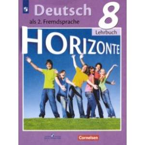 Учебник является составной частью УМК 'Немецкий язык' серии 'Горизонты' для 8 класса. Серия 'Горизонты' - это совместный проект издательства 'Просвещение' и издательства Cornelsen (г. Берлин), предназначенный для школ с изучением немецкого языка как второго иностранного с 5 класса. 8 класс - четвёртый год обучения. Материал учебника рассчитан на два часа в неделю. Современная лексика, живые ситуации общения, проектная работа дают возможность учителю проводить уроки с максимальной эффективностью в группах с любым уровнем обученности.