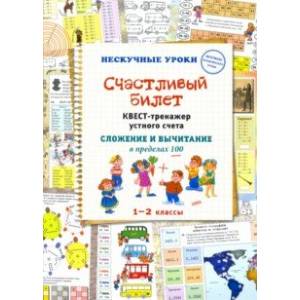 'Устный счет - гимнастика для ума'. Сделать его интересным и разнообразным поможет тренажер 'Счастливый билет', предназначенный для учеников 1-2 классов. Задание каждого разворота направлено на отработку определенного типа примеров устного счета: счет в пределах 10, с переходом через десяток в пределах 20 и 100.