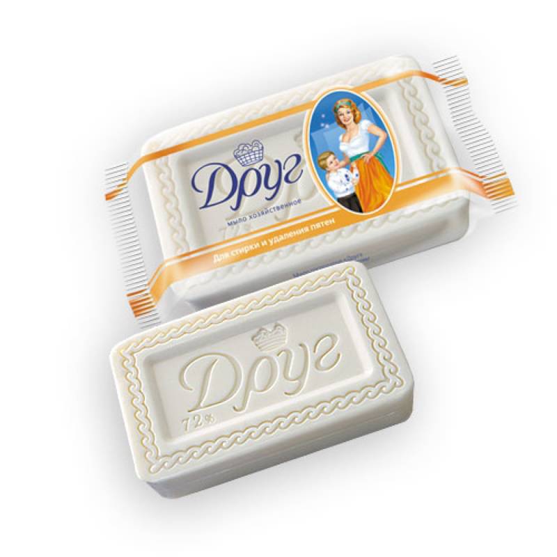 В состав хозяйственного мыла «Друг» для стирки и удаления пятен введена эффективная добавка, способствующая удалению пятен с поверхности ткани. Для наиболее эффективной стирки рекомендуется нанести мыло на пятно на 10-15 минут, а затем стирать как обычно. Застаревшие пятна можно обработать дважды