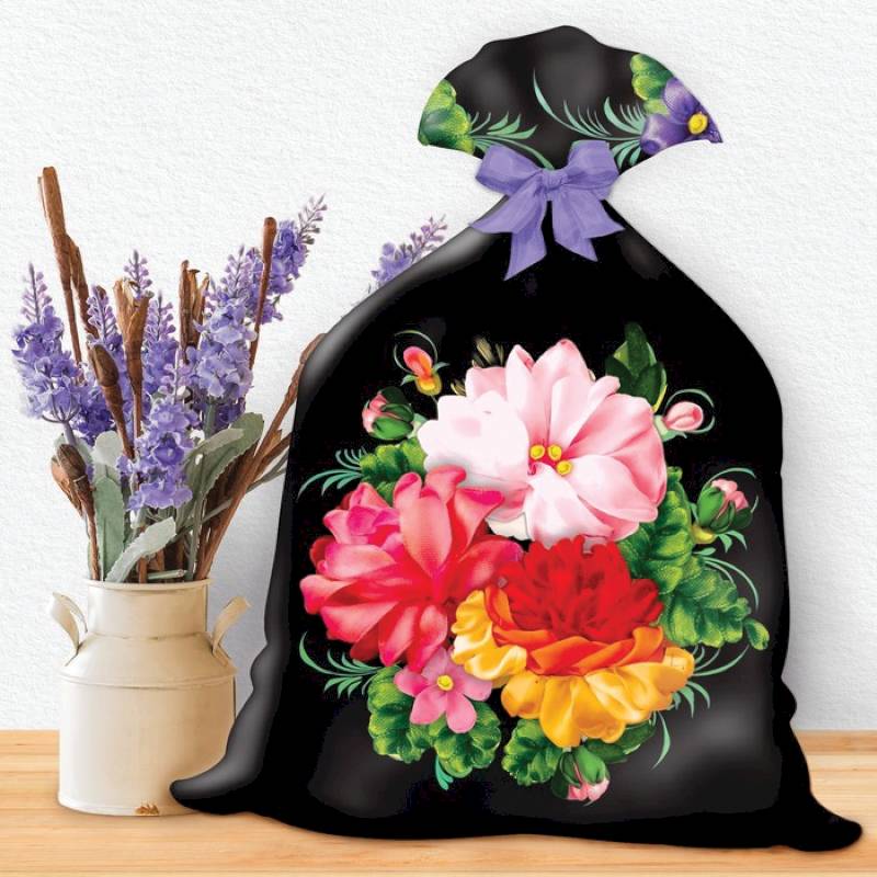 —Вышивка лентами на мешочке 'Жостово', 35 x 25 см