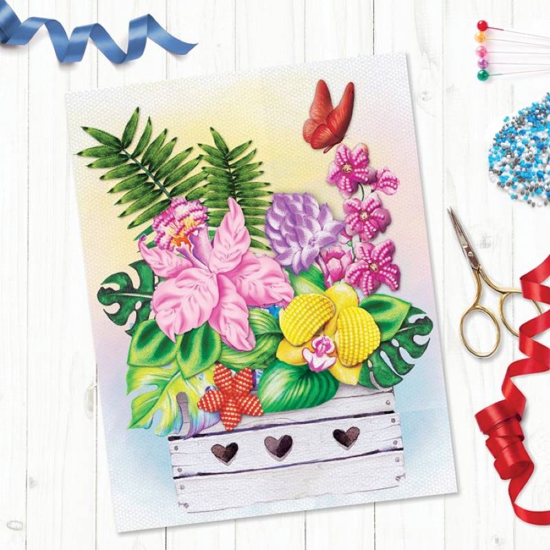Вышивка лентами — один из древнейших видов рукоделия. Технология включает в себя более 15 основных видов стежка, с помощью них можно создавать самые разнообразные узоры. В этой серии наборов вы сможете сделать объёмные элементы на картине с помощью синтепона. Подробную поэтапную инструкцию вы найдёте в комплекте.